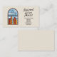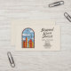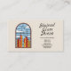 Business cards with a hand-drawn illustration of a stained-glass window with a blue sky, white clouds, and red and yellow buildings: perfect for stained glass artist, but also interior design, florist, artist designer, wedding planner, etc