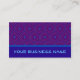 A bright and bold business card for many types of business, with a pattern of traditional ogee shapes in shades of purple and blue. Fully and easily customizable.