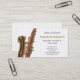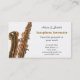 Business cards for saxophone players or instructors; black and white music design with silhouette of a saxophone; design is personalised with customisable text fields for adding your name, business, address and other informations