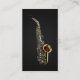 Illustrated business cards for saxophone players or instructors; black and golden music design with illustration of saxophone outline; design is personalised with customisable text fields for adding your name, business, address and other informations