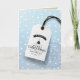Send all your business contacts this modern Holiday card with a warm Christmas greeting. A blue background with winter snowflakes and a nice white label with "Merry Christmas!" on the front.