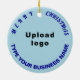 Merry Christmas! Ceramic ornament with Merry Christmas greeting texts, your business or company name and logo. Designs are dark blue texts on light blue background and on circle shape. Ornament to decorate the Christmas tree in your store, shop or office. Ornament to visually greet your customers this holiday season and to advertise your business or promote your brand name. Customise it and use it to build brand name awareness. Please check the appearance after uploading logo and typing your business name. If the appearance is pleasing to you, you can place your order now. If you need to resize and move the logo and texts to fit on this ornament or on other styles that you will choose, please change in the design tool. You can also make other changes according to your preference in the design tool such as changing the ornament colour, font colour and font style. Merry Christmas! Wishing you more sales this holiday season.