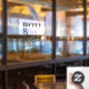 A stylish modern business vinyl window cling decal with a bold retro typography quote "merry & bright" in dark forest green on a transparent background. The greeting and company name can be easily customised to suit your needs. A trendy fun design to stand out this holiday season!