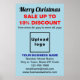 Merry Christmas! One of the most celebrated holidays of the year. It is also one of the best seasons to advertise your business. Customisable poster with Christmas Sale, your business name and other information. Poster that you can use as marketing material to attract more customers. Customise it and display it to convince more customers to buy your products or clients to like your services. Design colours are black, dark blue and red texts on light blue background. Contents are Merry Christmas greeting, sale texts with percent discount that you will offer, sale dates, your business name, logo, address, phone number, e-mail and website or your business social media page. Please check the appearance after uploading logo and typing texts. If the appearance is pleasing to you, you can place your order now. If you need to resize and move the logo and texts to fit on this poster or on the size and shape that you will choose, please change in the design tool. You can also make other changes in the design tool according to the appearance of this poster that you prefer such as changing the background colour, font colour and font style. Merry Christmas! Wishing you more sales this holiday.