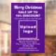 Merry Christmas! One of the most celebrated holidays of the year. It is also one of the best seasons to advertise your business or to promote your brand name to customers or clients. Customisable window cling with Christmas Sale, your business name and other information. Window cling that you can use as marketing material to attract more customers. Customise it and display it to convince more customers to buy your products or clients to like your services. Window cling for December or Christmas in July. Design colours are pink and white texts on purple background. Contents are Merry Christmas greeting, sale texts with percent discount that you will offer, sale dates, your business name, logo, address, phone number, e-mail and website or your business social media page. Please check the appearance after uploading logo and typing texts. If the appearance is pleasing to you, you can place your order now. If you need to resize and move the logo and texts to fit on this window cling or on the size and shape that you will choose, please change in the design tool. You can also change the background colour, font colour and font style in the design tool. Merry Christmas! Wishing you more sales this holiday.