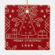 Business Company logo Merry Christmas Red Gold Art Ceramic Ornament