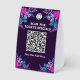 Business Company Logo Scan Qr Code Marketing Table Tent is great to feature your business, logo, QR code and marketing messaging. The table tent can be used for various businesses with your information and logo, It is bright and professional with flowers which will attract customers to view and engage with scanning the Qr code. The logo at the top is great for brand recognition. The QR code is a clear call-to-action to scan it. There are two different Qr codes one on the front and one on the back where you can direct your cutomers to different web or social media pages. Personalize it with your information.