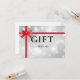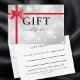 BUSINESS GIFT CERTIFICATE | modern, minimal, ribbon & Christmas pattern. Celebrate the holiday season with this customizable gift certificate featuring a festive snowflake design on a soft silver background. Wrapped with a striking red ribbon and bow, this certificate exudes holiday charm and is perfect for any business looking to add a seasonal touch to their gift offerings. Ideal for spas, beauty salons, wellness centers, or retail stores, this holiday gift certificate is designed to spread cheer and make gift-giving memorable. Printed on high-quality matte paper, it provides a touch of elegance and sophistication, ready to delight any recipient during the festive season.