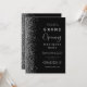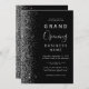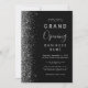 Invite customers to the grand opening of your business with this elegant modern invitation, featuring a silver faux glitter border on a black background. The customisable text combines silver grey handwriting, copperplate and italic fonts. The reverse side features a matching black and silver glitter design.