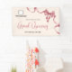 This business Grand Opening welcome banner features a modern watercolor red bow and ribbon on a light cream coloured background. The design offers space for your logo.