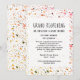 Terrazzo inspired design with desert inspired colour scheme and black text.
