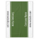 This dark green and white tablecloth has a text template. There's display text for a company name and website (or a custom message). The lines of display text appear twice on the tablecloth.