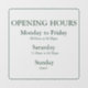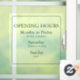 Make your business hours clear and stylish with this customizable Window Cling! Perfect for storefront doors and windows, this reusable cling displays your opening hours with a clean, professional design that catches the eye. Easy to apply and remove without residue — ideal for shops, cafes, salons, and offices.