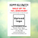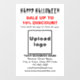 Horror, scary, spooky, creepy, ghost, monster, skull, pumpkin and so on. Happy Halloween! Holiday to scare but not to scare customers or clients. Holiday to celebrate this October and to advertise also your business. Customisable window cling with Halloween Sale, your business name and other information. Window cling that you can use as marketing material to attract more customers. Customise it and display it to convince more customers to buy your products or clients to like your services. Design colours are black and red texts on white background. Contents are Happy Halloween greeting, sale texts with percent discount that you will offer, sale dates, your business name, logo, address, phone number, e-mail and website or your business social media page. Please check the appearance after uploading logo and typing texts. If the appearance is pleasing to you, you can place your order now. If you need to resize and move the logo and texts to fit on this window cling or on the size and shape that you will choose, please change in the design tool. You can also change the background colour, font colour and font style in the design tool. Happy Halloween! Wishing you more sales this holiday.