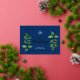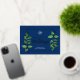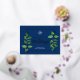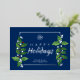Classy modern horizontal happy holidays busines corporate both side print flat greeting card with a place for your logo featuring elegant classic watercolor christmas leaves and real silver foil pressed frame and happy holidays text on a navy blue background. Perfect Christmas Greeting Card for business companies, small business, home business, employees, holiday company or any organisation, the modern design will give your clients the impression of luxury and success. The back side has custom wording. This Happy Holidays card template is ready for your online personalisation. The silver foil can be changed to gold or rose gold.