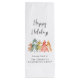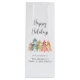 Elegant corporate Christmas wine gift bag for your business customers, clients and employees featuring a beautiful watercolor of sage green, red, gold and terracotta pine trees, "Happy Holidays" in a stylish script and your company name in simple modern typography.