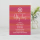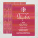 An invitation that can be used for corporate events or a holiday office party. It is stylish enough to use for your Christmas Cocktail Party. The modern, abstract design includes one snowflake and sans serif type for the main part of the text. The greeting is in a rustic modern script. The back includes a geometric pattern in watercolor red and a herringbone.