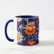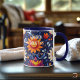 Enhance your holistic health business with our custom business mugs, showcasing a vibrant sunflower and lotus design on a deep blue background. This stunning design brings together vivid orange, red, and white floral patterns, creating a sense of vitality and wellness. Perfect for promoting your brand, these mugs can be personalised with your business name, making them ideal for client gifts, promotional items, or daily use in your health and wellness centre. Elevate your brand's presence with these uniquely crafted mugs, designed to inspire and energise.
