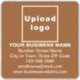 Customisable brown colour, large size and square shape vinyl sticker that you can use as signage to advertise your business or to promote your brand name to customers or clients. You can also use it as accessory of packaging material for large boxes. Customisable vinyl sticker that you can use as marketing material to build brand name awareness. Contents are your business name, logo, address, phone number, e-mail and website or your business social media page. Please check the appearance after uploading logo and typing texts. If the appearance is pleasing to you, you can place your order now. If you need to resize and move the logo and texts to fit on this sticker or on the size that you will choose, please change in the design tool. You can also change the background colour, font colour and font style in the design tool.