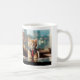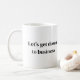 This ceramic coffee mug is shown with a cute kitten in a business setting print with text that say, "Let's get down to business".