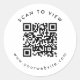 A modern minimalist personalised scannable business sticker with business QR Code and text. Personalise with your QR Code and text and create your own professional business stickers. Professional business labels perfect for business packaging and business branding. A custom round QR Code sticker.