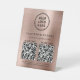 Modern and elegant all-purpose brushed rose gold faux metallic table top pedestal sign for your business. Upload your logo and 2 QR codes for customers and clients to scan for payment, information, a list of your products, services, prices, etc. Label the QR codes and add your business name, phone number, street address, website or other information in simple typography.
