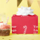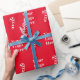 This red wrapping paper has a pattern made of a candy cane and a display image. You may replace the display image with your company logo to create custom business Christmas wrapping paper.