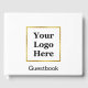 On the front of this white and faux gold guest book, there's a large display image at the top on a white background. You can replace the display image with your business logo. The faux gold border is not made of foil. Black text says "Guestbook" on the cover and under the company logo. You can edit the text if desired.