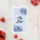 Personalise and add your business, company logo. Light blue background. Decorated with blue watercolored roses, florals.