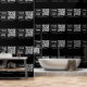 Modern black minimalist personalised business office wallpaper with business logo, custom text and QR code. Personalise to create your own design.