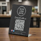 Make it easy for customers to follow, connect, and engage with your brand using this custom “Connect With Us” QR code pedestal sign. Designed on a clean black background, modern white lettering, space for your logo and Facebook and Instagram social media handle, this professional tabletop sign creates an inviting, contactless way for customers to reach your business online. Zazzle automatically generates the QR code from the website or link you provide. The prominent QR code lets visitors instantly access your website, social media, menu, services, or booking page with a single scan -- no typing required. Social media icons and your handle help boost followers while reinforcing brand recognition at the point of interaction. Perfect for retail counters, salons, cafés, restaurants, clinics, offices, events, and pop-up shops, this pedestal sign elevates your space while streamlining customer communication in a sleek, professional format.