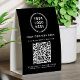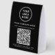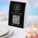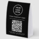 Promote your brand and make customer interactions effortless with this custom QR code black paper table tent sign, perfect for salons, spas, restaurants, boutiques, medical offices, hotels, and small businesses. Designed to display your logo, business name, and scannable QR code, this clean and modern tabletop sign helps guests or clients quickly view your services, menu, prices, or booking link with just one scan. Simply add your website or link, and Zazzle automatically generates the QR code, so there’s no technical setup required. Printed on durable, affordable paper, it’s a professional yet budget-friendly option for front desks, counters, or trade show displays. The minimalist design ensures your logo and QR code stand out clearly, complementing any brand style or décor. Easily personalize with your logo, address, phone number, website or other text to create a cohesive, on-brand customer experience that looks polished and inviting.