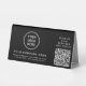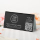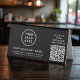 Elevate your in-store presentation with this custom black horizontal QR code pedestal sign, designed to make customer interaction fast, simple, and contactless. Featuring a clean layout, modern white lettering, and your logo, business name, and contact details, this sleek tabletop sign is perfect for counters, reception desks, checkout areas, and service stations. Customers can scan to view services and prices instantly, eliminating the need for printed menus or brochures. Zazzle automatically generates the QR code from the website address you enter, so setup is quick and hassle-free. The wide, horizontal format offers excellent readability, while the sturdy pedestal base keeps the sign upright and professional in high-traffic areas. Ideal for retail stores, salons, spas, cafés, restaurants, clinics, and offices, this personalized QR code pedestal sign helps increase website traffic, streamline communication, and reinforce your brand with a polished, modern look.