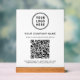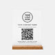 Elevate your counter or reception area with this custom QR code acrylic tabletop sign, designed to make connecting with your business fast, easy, and professional. Featuring a sleek white acrylic panel with a modern wood base, this sign highlights your logo, business name, and a scannable QR code in a clean, minimalist layout that complements any space. Perfect for restaurants, cafés, salons, boutiques, offices, clinics, hotels, and events, this tabletop acrylic sign allows customers to instantly view your services, prices, menus, booking page, or website with a single scan. Simply enter your website address, and Zazzle automatically generates the QR code for you -- no design or tech skills required. The premium acrylic material offers a polished, high-end look while remaining durable and easy to display on counters, desks, and tables. A stylish, contactless marketing solution that boosts engagement, saves space, and keeps your brand front and center.