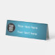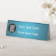 This professional desk name plate features a clean layout with clear space for a logo, full name, and job title. The modern font and bold background make the text easy to read, ensuring excellent visibility on office tables, reception counters, and conference spaces. Printed with premium quality for durability and long-lasting color, this tabletop sign adds a polished and organized look to any workspace.