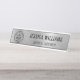 Business Logo Employee Elegant Faux Brushed Silver Desk Name Plate