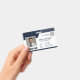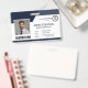 This professional navy blue employee badge features customisable business logo, employee name and title, photo, and a barcode on the front for added functionality, with an optional QR code on the back. Perfect for corporate, retail, or security settings, it combines sleek design with practicality, offering a modern and polished look for your team.