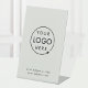 A simple custom silver grey business pedestal sign template in a modern minimalist style which can be easily updated with your company logo and details.