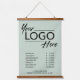 Modern sage green professional wall hanging for your business featuring your logo, business hours and phone number and website. The colours of the background and text can be changed to your branded colours by editing in the design tool.
