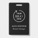 Give your team a sharp, professional look with this modern black employee badge. Featuring a clean, minimalist design with your business logo and staff member information, this badge is perfect for corporate offices, retail stores, events, and more. The sleek black background ensures readability and style.