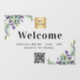 A transparent background and black text. Decorated with lavender and eucalyptus greenery. Personalise and add your logo and text. Add your web url to your website (or social media account) to the QR code.