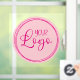 Add your own round hot pink (or other colour) PNG graphic branded business logo image on top a pastel pale pink colour circle.