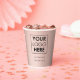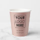 A professional business logo and text paper cup with a pink rose gold background. Perfect for your business, office, corporate event, hospitality business etc.