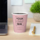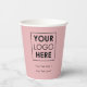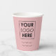 A professional business logo and text paper cup with a pink background. Perfect for your business, office, corporate event, hospitality business etc.
