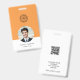 Personalise this vertical identification badge with your logo on the top, employee's photo, name, title or department. Company details and employee ID number, QR code or other key data on the back. CHANGE the orange colour to anything with our Edit tools - MORE premade designs in our collection.