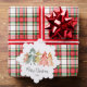 Simple and elegant holiday card and gift tag for your business that your customers and clients can also use as a paper tree ornament. The front features a watercolor abstract of pine trees in muted sage green, red, gold and orange and "Merry Christmas" in a stylish script. On the back, upload your logo, personalise your greeting and add your company name in modern white typography on a red background.
