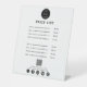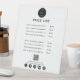 A modern "price list" white design. A minimalist personalized QR code, business logo and social media business sign. A simple and professional way to allow your customers to view price lists and digital information. Customize the text and make it your own..