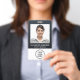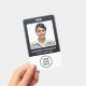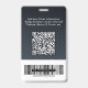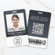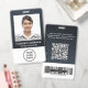 Create a polished and professional look with this custom employee photo ID badge, designed for clear identification and modern branding. This badge features a dark blue to black gradient background, your business logo, a dedicated photo area, bold name display, and customizable job title for easy recognition. The structured design ensures your team looks organized and professional across any workplace setting. The reverse side includes a large QR code and barcode section, making it ideal for access control, check-ins, inventory systems, or digital information sharing. Perfect for corporate offices, small businesses, retail and customer-facing teams, healthcare and education staff, events, conferences and security personnel.