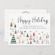Minimal business holiday card featuring abstract retro illustrations of green, terracotta and gold Christmas trees and stars, "Happy Holidays" in a stylish script and your greeting and company name in simple typography. On the back, personalise an additional message of appreciation, upload your company logo and input your website address to create a scannable QR code.
