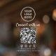 Invite customers to engage with your brand instantly using this modern Connect With Us QR code window cling. Designed to feature your business logo, a friendly call-to-action, a scannable QR code, your Facebook, Instagram, TikTok and X social media handle, and clean white lettering, this eye-catching decal turns your storefront window into a simple, effective connection point. Perfect for retail shops, salons, cafés, studios, clinics, pop-ups, and service-based businesses, this window cling makes it easy for customers to follow you online, explore your website, and stay connected long after they leave. Ideal for glass doors, windows, and entryways, this sleek design helps grow your online presence, increase social media followers, and encourage repeat engagement -- all while maintaining a professional storefront aesthetic. Easy to apply and remove, it’s a smart, contactless way to connect with today’s digitally minded customers. Make your window work harder for your brand with a QR code sign that turns foot traffic into lasting connections.